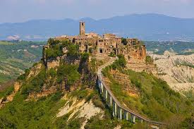 Il paesino da fiaba, arroccato su di un cucuzzolo di pietra tufacea, da tanto tempo rischia di scomparire a causa dell’erosione continua del monolite che lo sostiene. Bonaventura Tecchi grande scrittore, figlio di questa terra, in un tempo ormai lontano, ebbe l’idea magica di battezzare Civita di Bagnoregio come “la città che muore”.